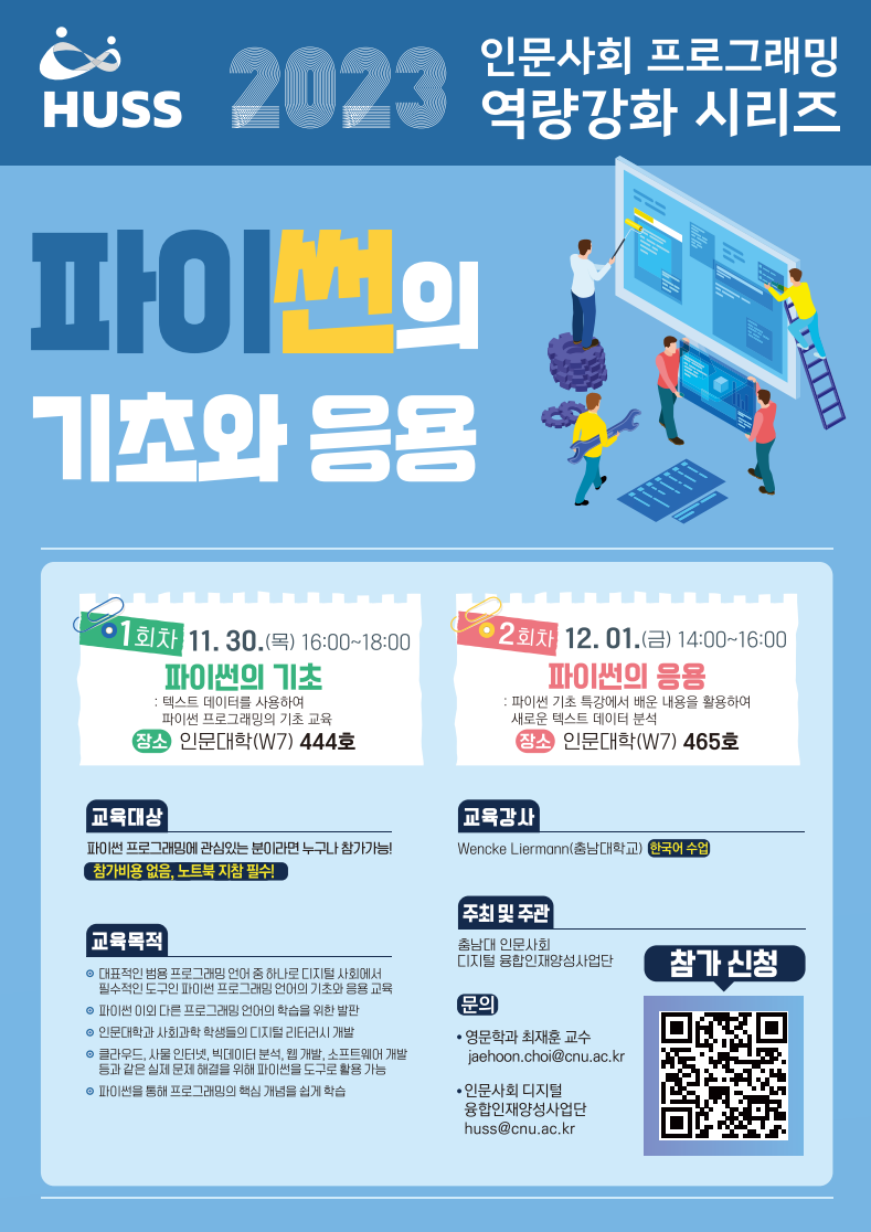 • 미니 초급강좌: HUSS 컨소시엄 각 분야에 대한 기본기 학습 강좌 (강좌별 30분 내외)